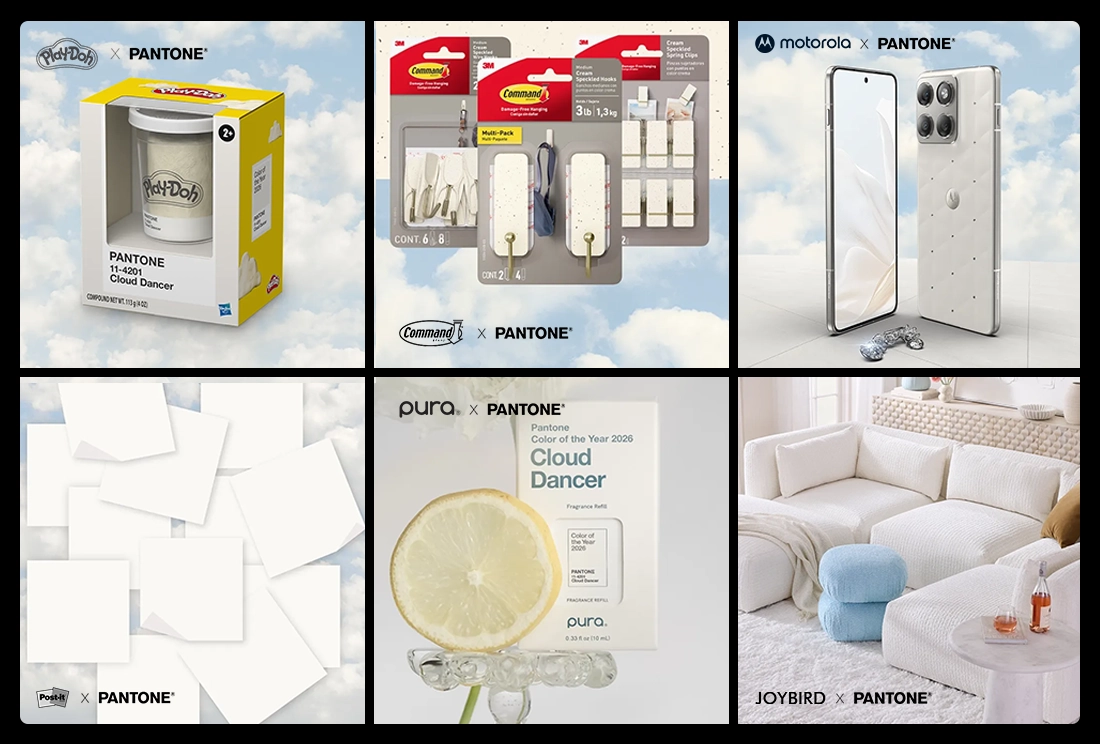 Si algo confirma el potencial de CloudDancer, es la selección quirúrgica de marcas que Pantone eligió para materializarlo. Play-Doh, con su ADN lúdico, lo convirtió en un recordatorio deque la neutralidad también puede ser juguetona. Motorola Pura lo llevó al terreno del diseño tecnológico depurado y emocionalmente inteligente. Commandlo usó para reforzar la estética de utilidad ordenada y confiable. Post-it demostró que incluso las ideas más pequeñas necesitan un espacio limpio para existir. Y Joybird lo tradujo a hogar: calma, claridad y propósito. Estas colaboraciones funcionan como laboratorio vivo: cinco universos distintos probando que Cloud Dancer no compite… habilita. Lo hace todo más claro sin robarse la escena.